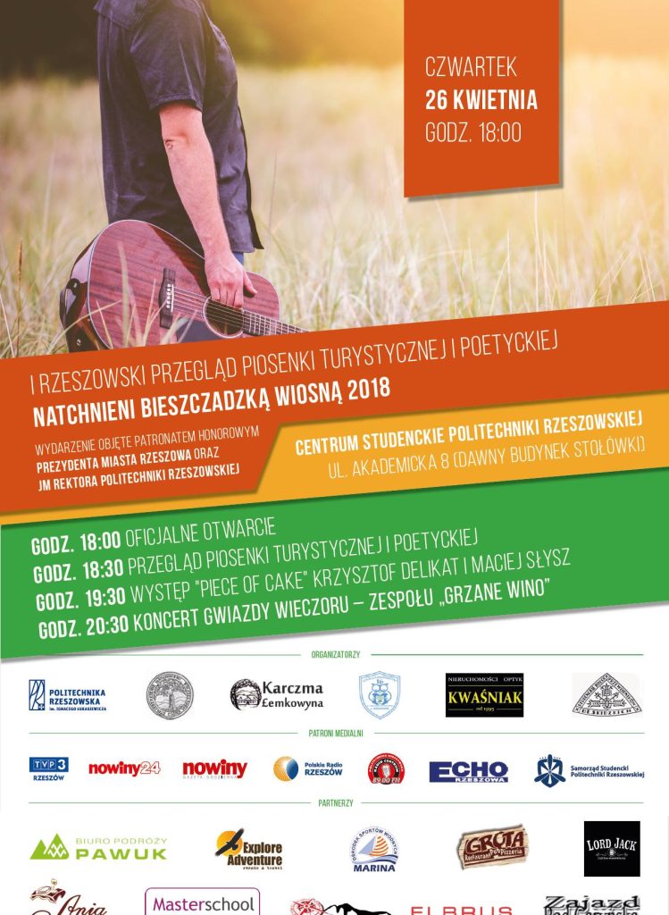 Bieszczadzkie Przywitanie Lata na Rynku Rzeszowskim (współpraca z Festiwalem Piwa) – 15.06.2018 r. Odbyły się koncerty zespołów: Grzane Wino, Piotr Łagodzic, Piece of Cake (Krzysztof Delikati Maciej Słysz), Andrzej Czyż, Kapela z Przypadku.