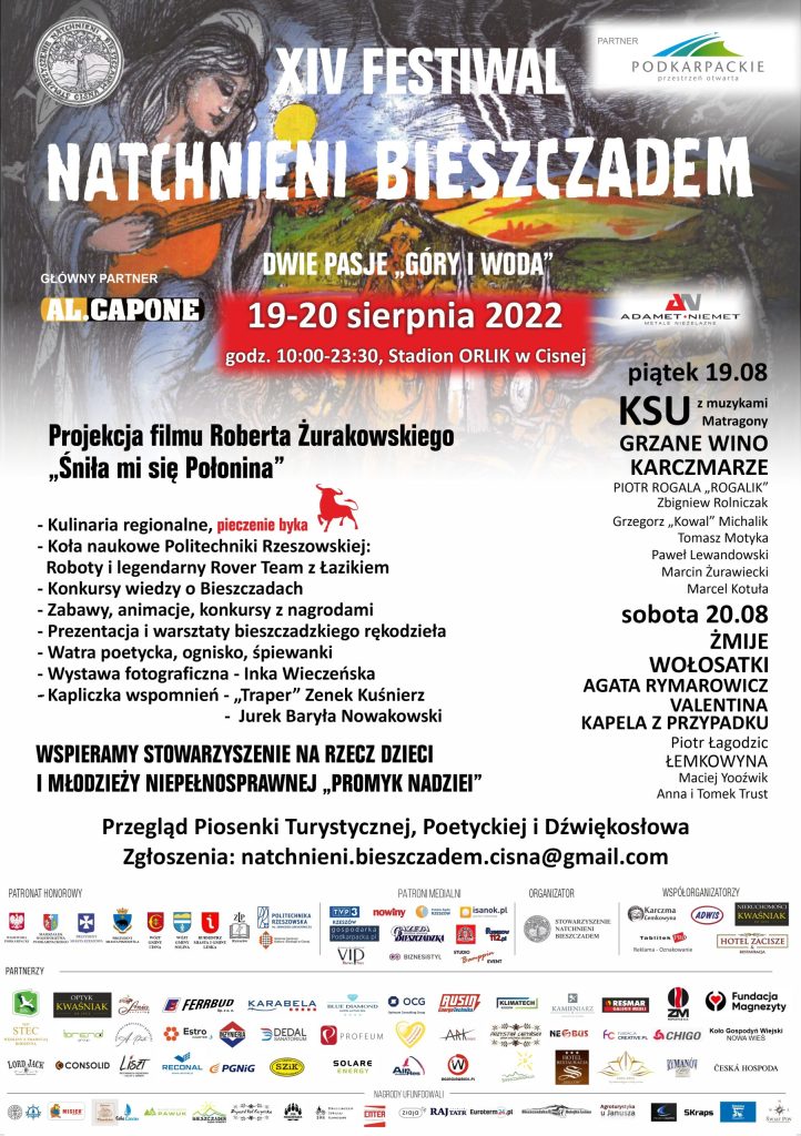 Zapraszamy na XIV edycję Festiwalu Natchnieni Bieszczadem w Cisnej 19-20 sierpnia 2022